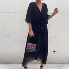 Tritt mit Selbstbewusstsein und Stil in unserem Kleid mit Nikola-Rand und einem verführerischen V-Ausschnitt in großen Größen auf! Dieses Kleid ist dafür gemacht, jede Kurve zu betonen und vereint mühelos Eleganz und Anziehungskraft.