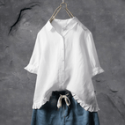 Lena - Damen Leinenbluse mit V-Ausschnitt