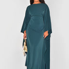 Das Ariana – Cape Maxikleid vereint zeitlose Eleganz mit einem Hauch Dramatik. Der raffinierte Cape-Schnitt fällt locker über die Schultern und sorgt für einen einzigartigen Look, der sowohl schmeichelhaft als auch stilvoll ist. Der leichte, fließende Stoff sorgt für ein angenehmes Tragegefühl und macht das Kleid zur perfekten Wahl für besondere Anlässe, Abendveranstaltungen oder elegante Alltagsmomente. Die lange Passform streckt optisch die Figur und unterstreicht die feminine Ausstrahlung. Einfach reinschlüpfen und glänzen – das Ariana-Kleid macht’s möglich.