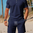 Das Calvin Sommer-Set verkörpert den exklusiven Sommer-Stil für Herren. Dieses elegante und komfortable Set beeindruckt mit seiner hervorragenden Verarbeitung und dem durchdachten Design, das Eleganz und Komfort perfekt vereint. Perfekt für Männer, die im Sommer stilvoll aussehen wollen, ohne auf Bequemlichkeit zu verzichten. Erleben Sie die optimale Mischung aus Leichtigkeit und Stil, die dieses Set zu einem unverzichtbaren Element Ihrer Sommergarderobe macht.Gründe, warum das exklusive Calvin Sommer-Set Ihren Kleiderschrank bereichern sollte:Hochwertige Materialien:Die ausgewählten Stoffe bieten nicht nur hohen Tragekomfort, sondern auch Langlebigkeit.Durchdachtes Design: