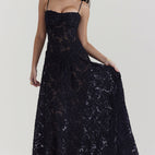 Cecily - Glattes Spaghettiträger Maxi-Kleid