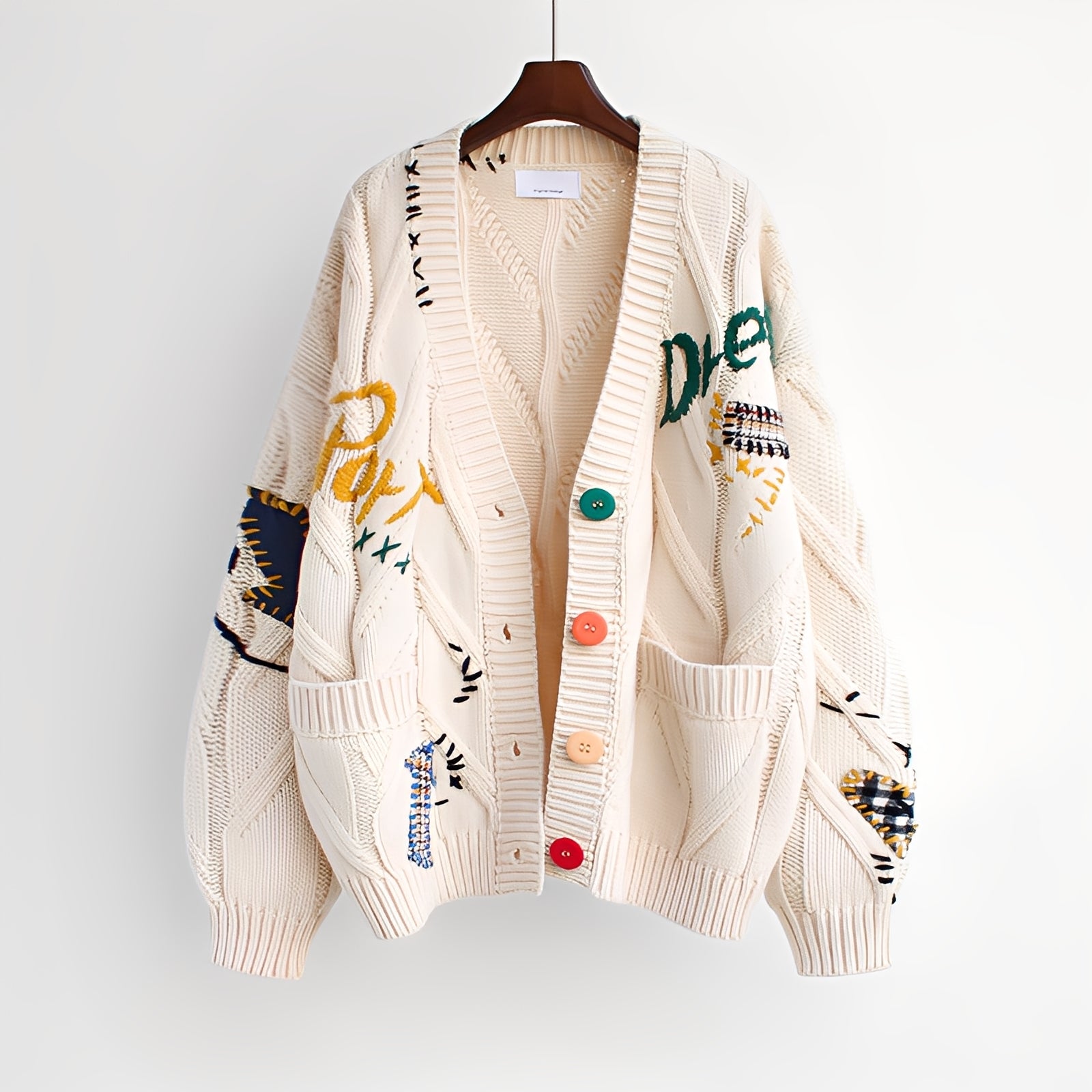 Die „Chantelle“-Strickjacke verbindet elegantes Design mit angenehmem Tragekomfort. Ihr Patchwork-Muster verleiht jedem Outfit eine besondere Note, während das leichte Material ideal für Frühling, Herbst oder kühlere Sommertage ist. Vielseitig kombinierbar, passt sie sowohl zu Jeans als auch zu Röcken und sorgt immer für einen stilvollen Look.