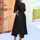 Dahlia - Elegantes schulterfreies Kleid mit Gürtel für Damen