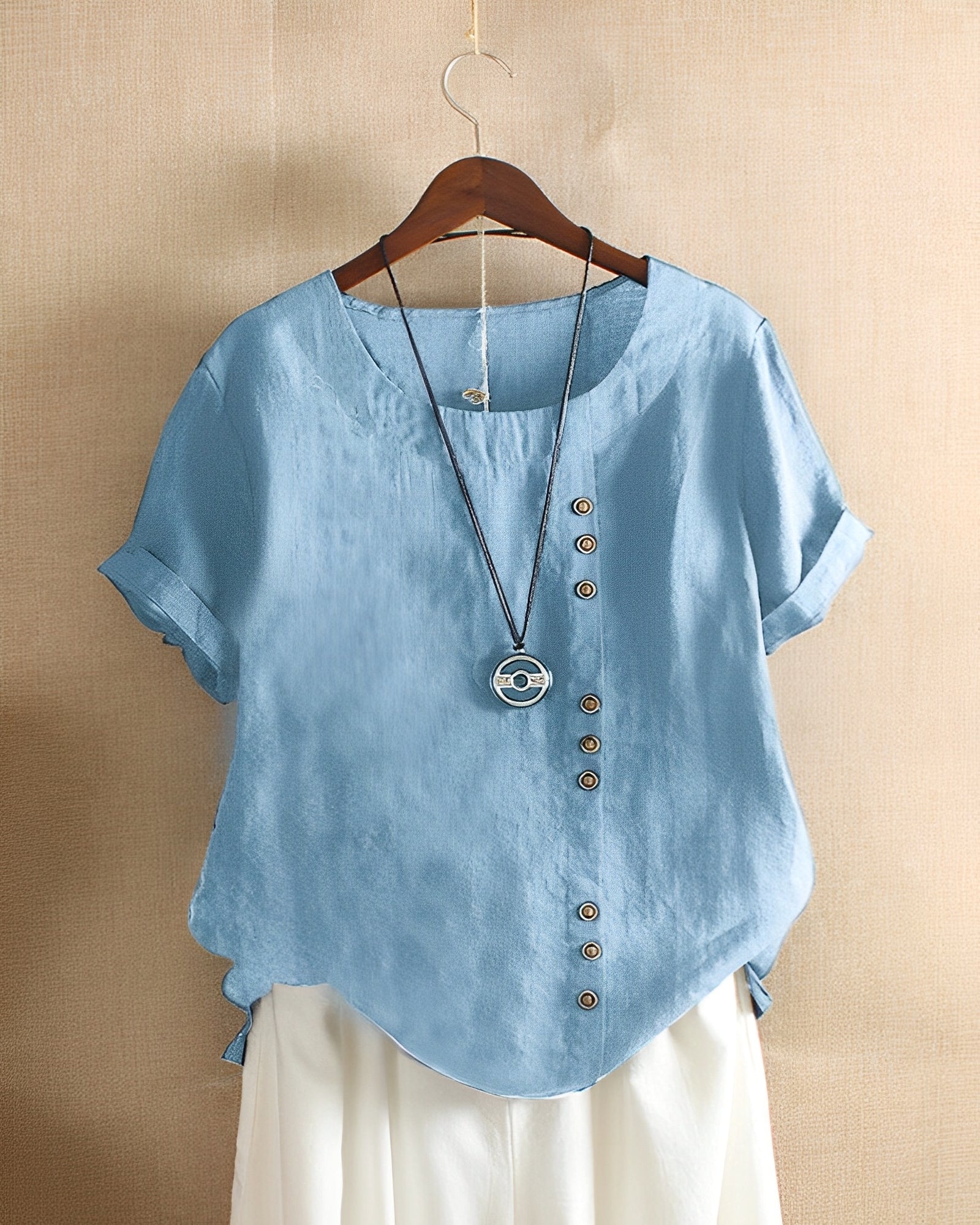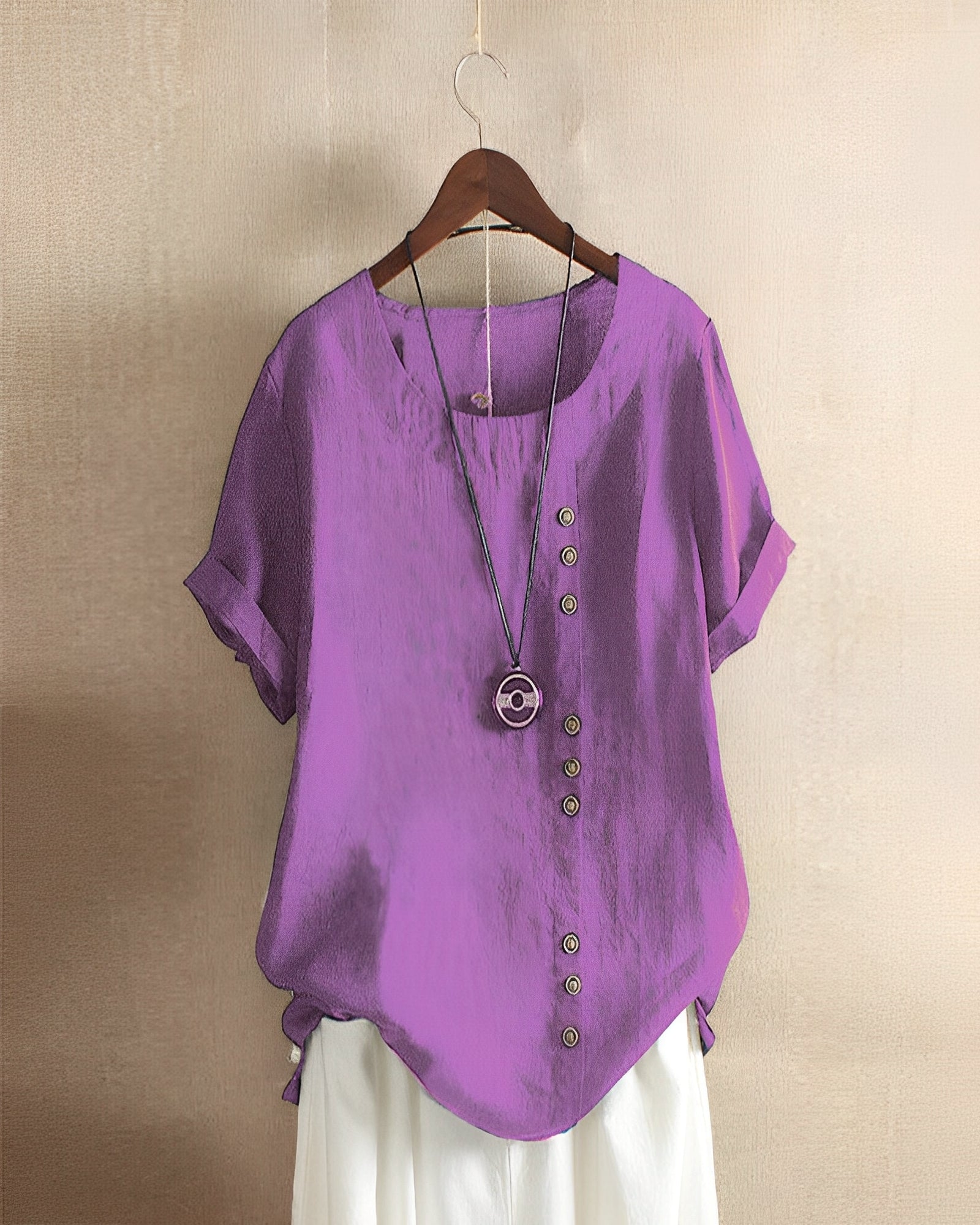 Fayo - Müheloses Blusentop mit V-Ausschnitt und Knopfleiste