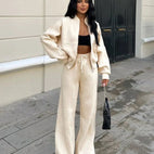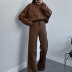 Damen Set - Oversize Sweatshirt mit Reißverschluss - Weite High-Waist-Hose - Komfort Fit: Die perfekte Kombination aus Komfort und Stil. Genießen Sie den lässigen Schnitt mit einem Oversize-Sweatshirt mit Reißverschluss und einer weiten High-Waist-Hose.