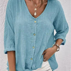 Fayo - Müheloses Blusentop mit V-Ausschnitt und Knopfleiste