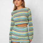 Zweiteiliges Damen-Set – Langarm-Crop-Top und hoch taillierter Minirock, gefertigt aus einem raffinierten strukturierten Stoff. Ein perfektes Outfit für einen lässigen und modischen Look!