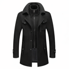 Dieser Mantel mit Zweifachkragen besticht durch sein einzigartiges und modernes Aussehen und bietet eine stilvolle Alternative zu traditionellen Mänteln. Perfekt für kalte Tage, kombiniert er Komfort und Funktionalität.