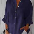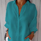 Lena - Damen Leinenbluse mit V-Ausschnitt