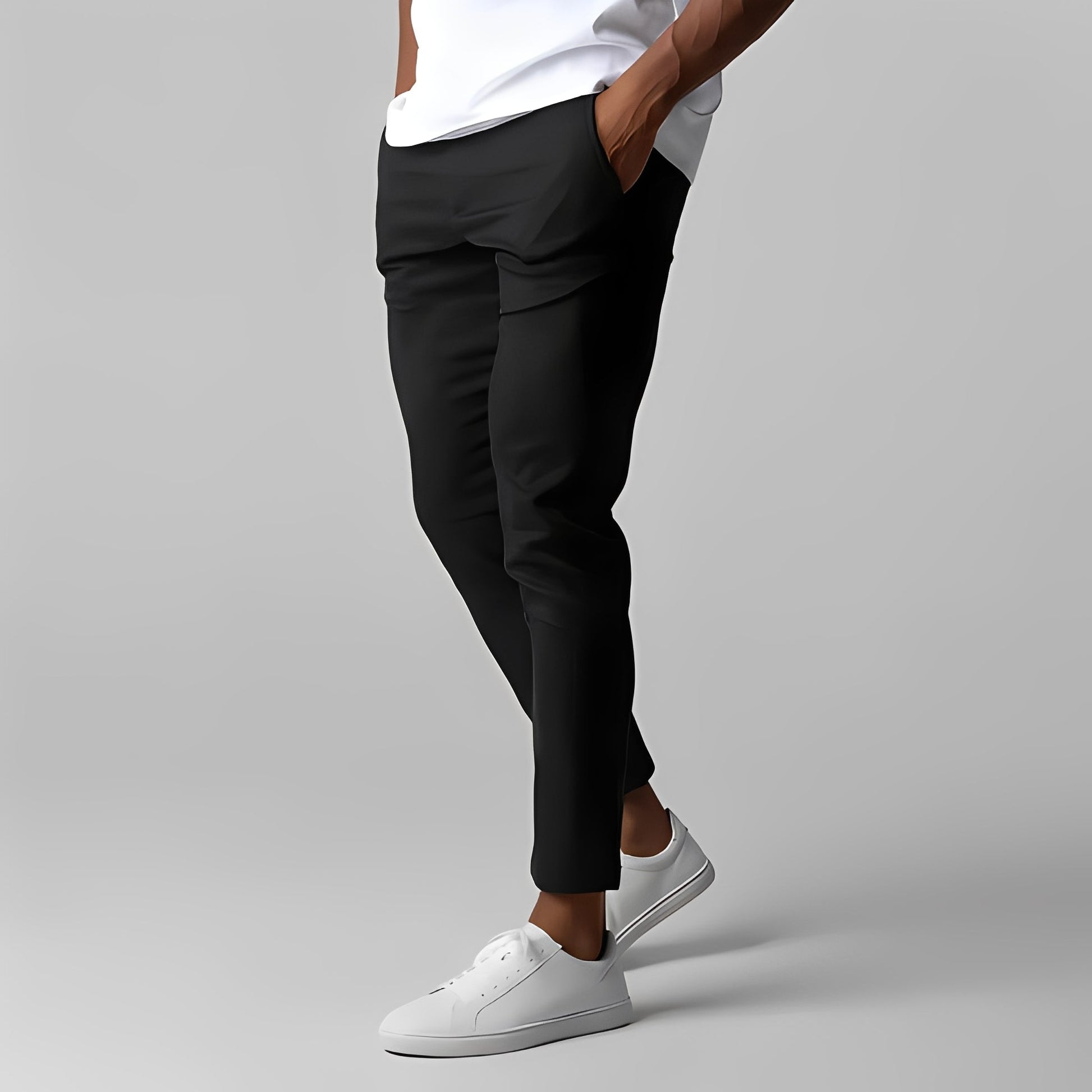 Entdecken Sie unsere ausgezeichnete Stretchhose Gwenaël, die idealen Tragekomfort, Flexibilität und einen modernen Stil vereint. Hergestellt aus einem weichen, dehnbaren Material, das sich Ihren Bewegungen anpasst, ist sie perfekt für die Arbeit im Büro und entspannte Wochenenden. Dank ihres einfachen und vielseitigen Designs passt sie zu jedem Outfit, von schicken Hemden und Sakkos bis zu lässigen T-Shirts und Turnschuhen. Sie ist langlebig und leicht und bietet ganztägigen Komfort, ohne auf Stil zu verzichten.