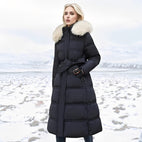 Dieser lange Daunenmantel vereint hohen Wärmekomfort mit modernem Design. Der hohe Kragen schützt zuverlässig vor Wind und Kälte, während die wattierte Füllung für angenehme Wärme sorgt. Die elegante, lange Passform schmeichelt der Silhouette und macht den Mantel vielseitig kombinierbar – ideal für Alltag, Arbeit oder winterliche Spaziergänge. Ein Must-have für stilbewusste Frauen in der kalten Jahreszeit.