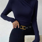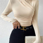 Isabelle – Überlappender Kragen Faltenschnürpullover