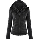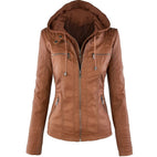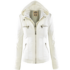 Janene - Lässige, wetterfeste Lederjacke mit Kapuze für Damen