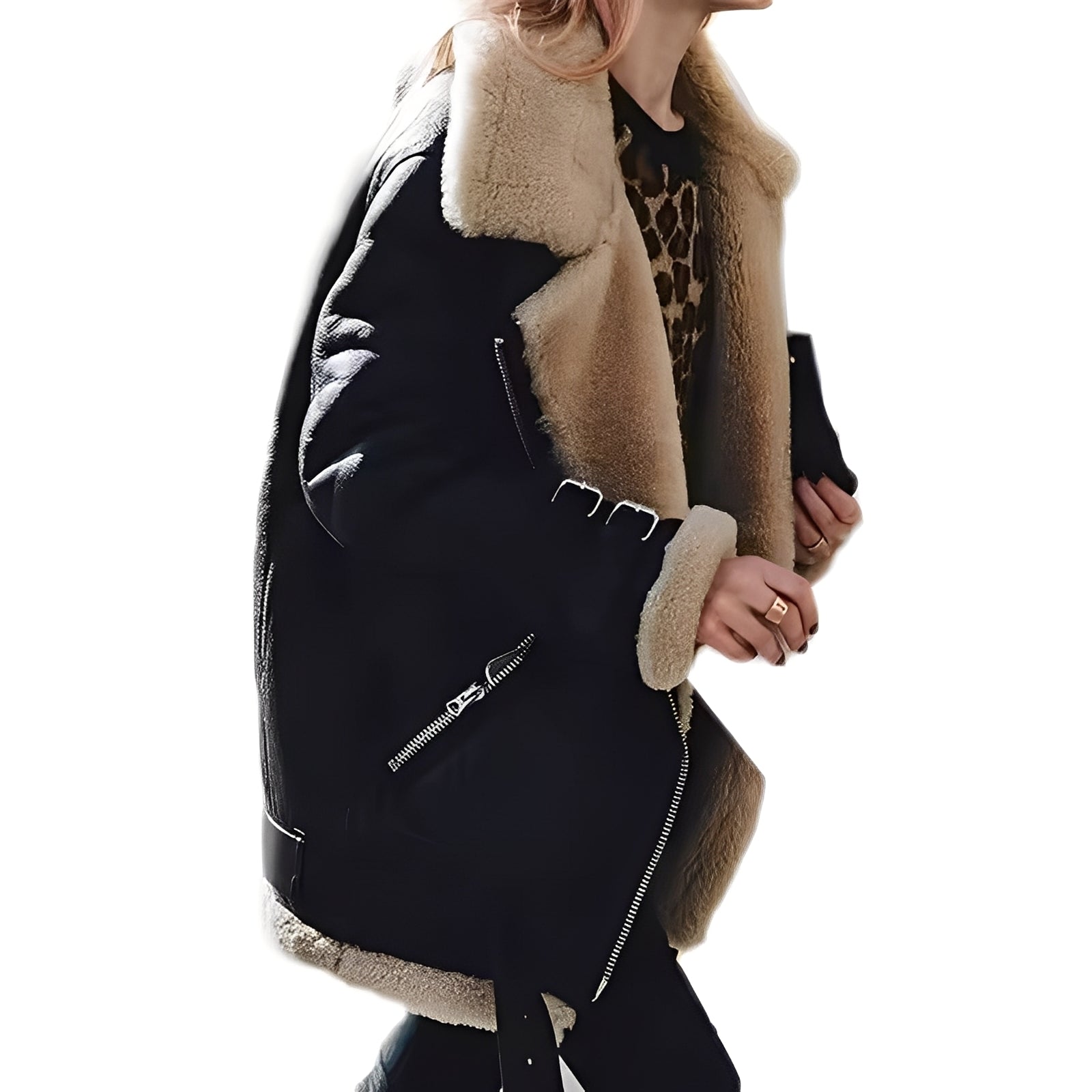 Jessie - Warme Bikerjacke aus Wolle mit Reißverschluss für Damen