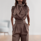 Verleihen Sie Ihrem Outfit neue Frische mit diesem eleganten ärmellosen Einteiler. Der hochgeschnittene Gürtel unterstreicht die Figur und sorgt für lässige Eleganz bei jedem Anlass.