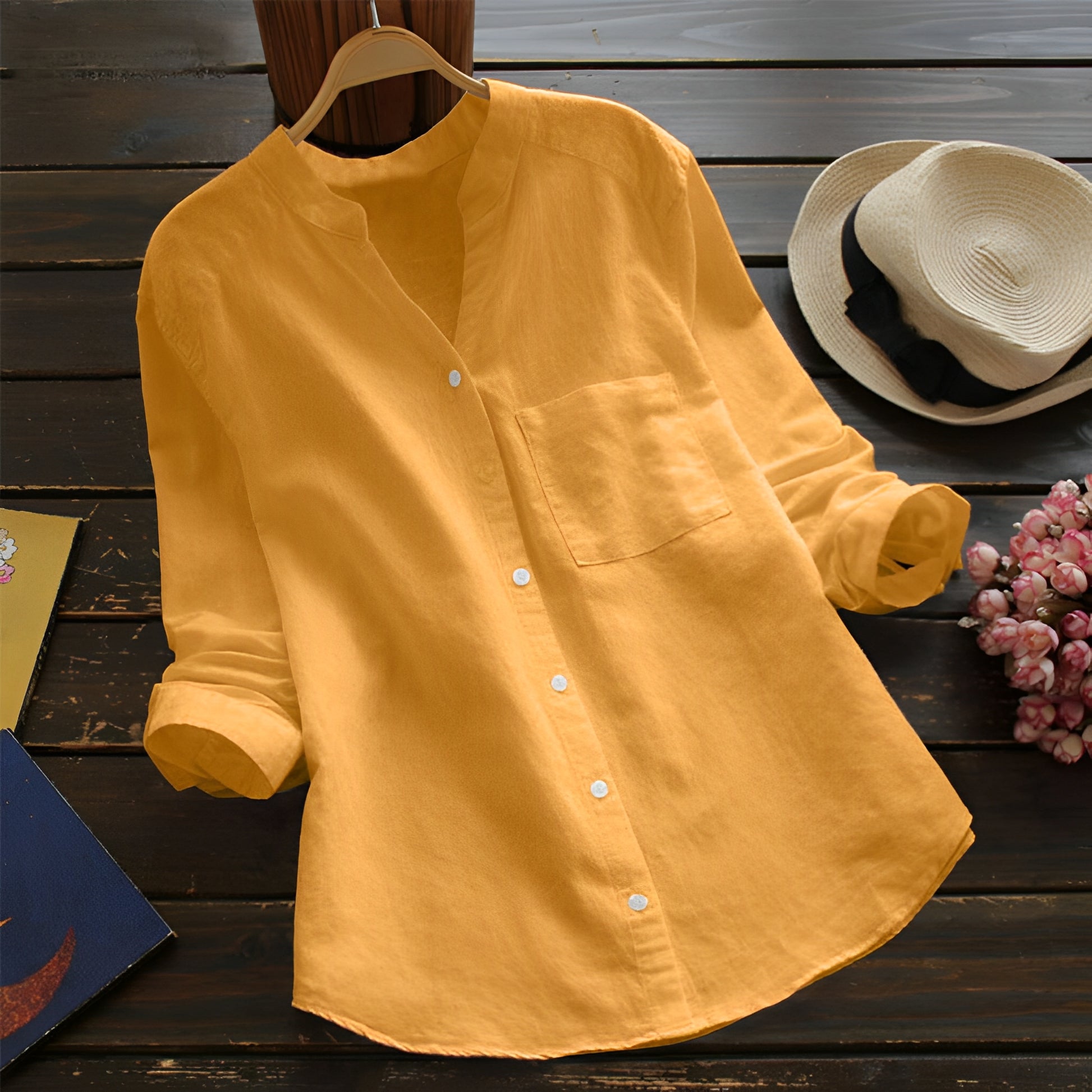 Lena - Damen Leinenbluse mit V-Ausschnitt