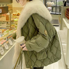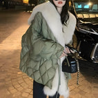Deshalb gehört ‚Marjorie - Oversized Duck Down Puffer Jacket mit grünem Fellkragen für Damen‘ in Ihren Kleiderschrank: