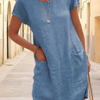 Rieke – Leinen-Shiftkleid mit V-Schlitz