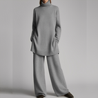 Das Damen-Strickset Mireille kombiniert Wärme, Weichheit und einen lässigen Stil, perfekt für kühlere Tage. Der Pullover zusammen mit der passenden Hose bietet ein gemütliches und harmonisches Outfit, ideal für Zuhause, Reisen oder entspannte Moment. Das dicke Strickmaterial sorgt den ganzen Tag für Wohlbehagen, ohne schwer oder einengend zu sein. Es ist so gestaltet, dass es Ihre Bewegungen unterstützt, Sie warm hält und eine ansprechende Silhouette betont. Ein unverzichtbares Winterset für alle, die Wert auf Komfort und Stil legen.