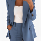 Das Muriel Blazer-Set ist die ideale Wahl für moderne Frauen, die Wert auf Stil und Professionalität legen. Es besteht aus einem edlen Blazer und einer perfekt passenden Hose, die gemeinsam ein harmonisches und elegantes Gesamtbild schaffen. Dank der hochwertigen Materialien bietet das Set nicht nur einen stilvollen Auftritt, sondern auch angenehmen Tragekomfort – ideal für Büro, Meetings oder besondere Anlässe.