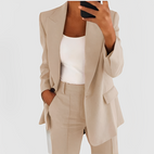 ✔ Vollständiges Erscheinungsbild: Mit einem Blazer mit Kerbrevers und einer passenden eleganten Hose.
