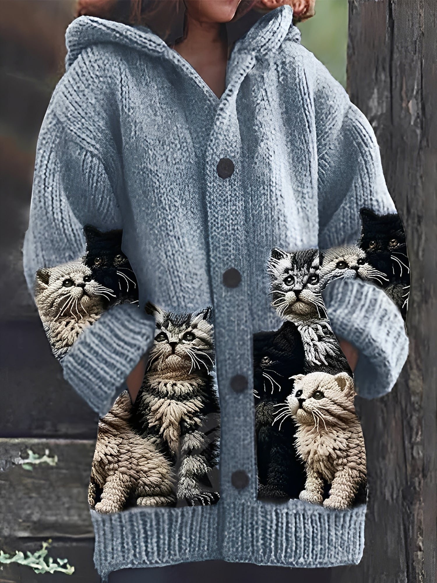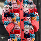 Die Rexana Mantel bringt mit ihrem liebevollen Katzenmotiv einen Hauch von Charme in Ihren Look. Das weiche Strickmaterial sorgt für angenehme Wärme und hohen Tragekomfort – ideal für gemütliche Stunden oder als stilvolles Layering-Piece. Der lockere Schnitt und die praktischen Knöpfe machen das An- und Ausziehen besonders einfach. Egal ob zu Jeans, Leggings oder Rock – Rexana passt immer. Ein Must-have für alle, die verspielte Details und Komfort lieben.