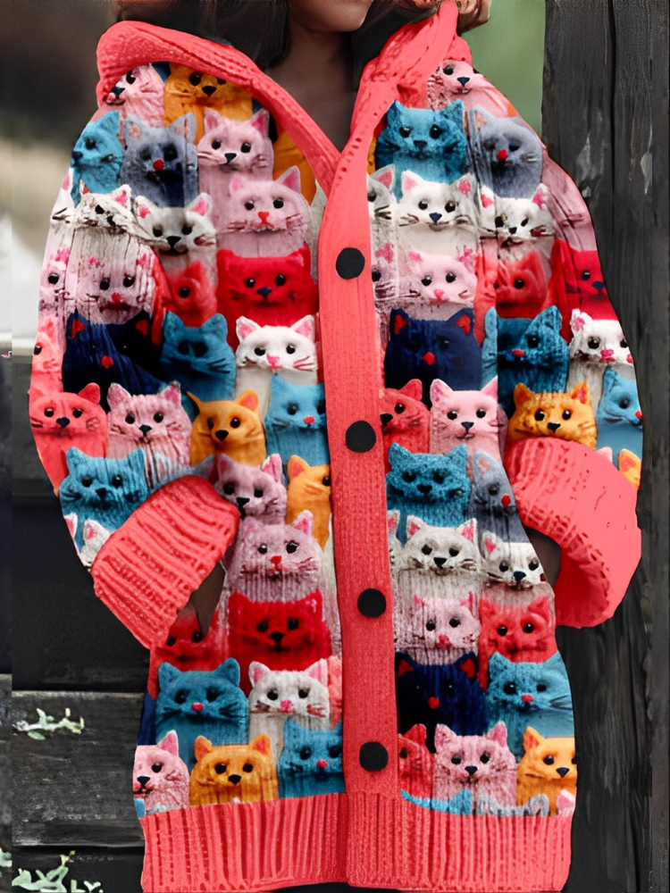 Deshalb gehört „Rexana – Mantel mit Katzenmotiv“ in Ihren Kleiderschrank: