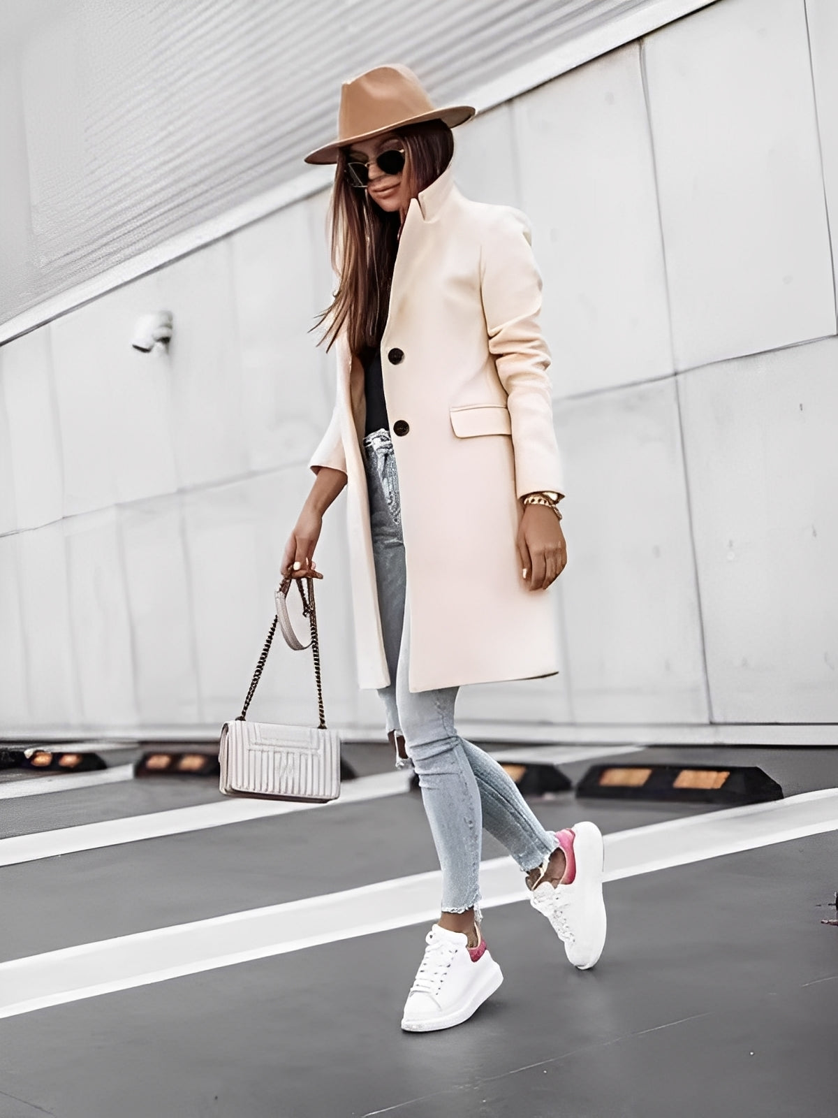 Rhetta - Eleganter Wollmantel mit Knöpfen für Damen