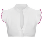 Die Sharla - Damen Kurze Ärmel Oktoberfest Dirndl Bluse überzeugt durch ihre luftige Passform und den klassischen Trachtenstil. Die kurzen Puffärmel mit Spitzenbesatz verleihen der Bluse eine verspielte, feminine Note und bieten gleichzeitig hohen Tragekomfort. Der elastische Ausschnitt sorgt für eine schöne Silhouette und passt sich flexibel an. Ideal für warme Festtage auf dem Oktoberfest oder bei anderen Trachtenveranstaltungen. Diese Bluse ist die perfekte Wahl für stilbewusste Dirndlträgerinnen.