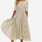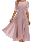 Das Ximena Schönes Damen-Spitzenkleid Knielang steht für zeitlose Eleganz und schlichte Schönheit. Dieses Kleid beeindruckt durch seine feine Spitzenverzierungen und den klassischen A-Linien-Stil in einer schmeichelhaften knielangen Form, die jede Frau wunderschön in Szene setzt. Die Halbärmel geben dem Kleid zusätzlichen Charme und Zurückhaltung. Egal ob bei einem schicken Abendessen, Jubiläum oder festlichen Event – mit Ximena sind Sie immer perfekt und stilvoll gekleidet.