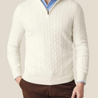 Der Zephyr - Pullover mit Zopfmuster und Reißverschluss ist perfekt für kühle Tage und modische Auftritte. Dieser hochwertige Pullover mit Zopfmuster bietet nicht nur angenehme Wärme durch das dicke Material, sondern auch eine stilvolle Optik dank des klassischen Musters. Der Reißverschluss am Kragen erlaubt eine individuelle Anpassung und macht diesen Herrenpullover zu einem vielseitigen Muss für Ihre Garderobe.