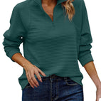 Deshalb gehört „Zinnia – Gerippter Pullover mit Reißverschluss-Ausschnitt“ in Ihren Kleiderschrank: